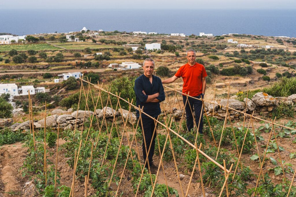 Nikos: We collaborate with two farms. One of them has its own vegetable garden, and they organize cooking classes the old way, cooking in ceramic pots. Our guests go there, collect the products directly from the soil, learn how to cook them, and then sit down around the table and eat together. It takes the entire morning. It’s a great experience because they produce vegetables almost without water, and they have developed very special local techniques to irrigate, save, and conserve.