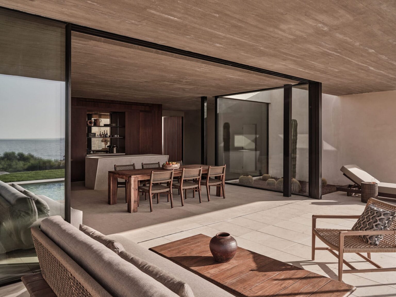 The aesthetic is unmistakably OKU: organic textures, earthy tones, and minimalist lines inspired by traditional Andalusian architecture. The rooms and suites echo this philosophy, each designed with natural wood, handcrafted details, and a neutral palette that invites relaxation. Floor-to-ceiling windows bring in Mediterranean light, while private terraces offer views of the gardens, pools, or ocean beyond.