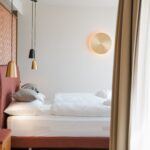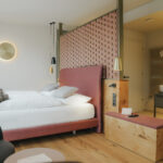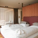 Die 45 Suiten des Adults-Only-Hotels sind mit natürlichen Materialien wie Holz, Kupfer und Stein gestaltet. Die klaren Linien und das zurückhaltende Design schaffen eine Atmosphäre der Ruhe. Raumhohe Fenster holen die Natur nach drinnen, während private Balkone und Terrassen atemberaubende Ausblicke auf den See oder die Bergwelt eröffnen.