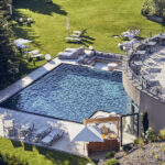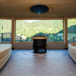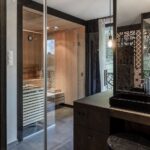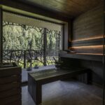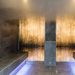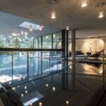 Der Spa-Bereich erstreckt sich über zwei Etagen mit 1500qm. Er verfügt über einen beheizten Innen- und Außen-Infinity-Pool mit Blick auf die Natur.