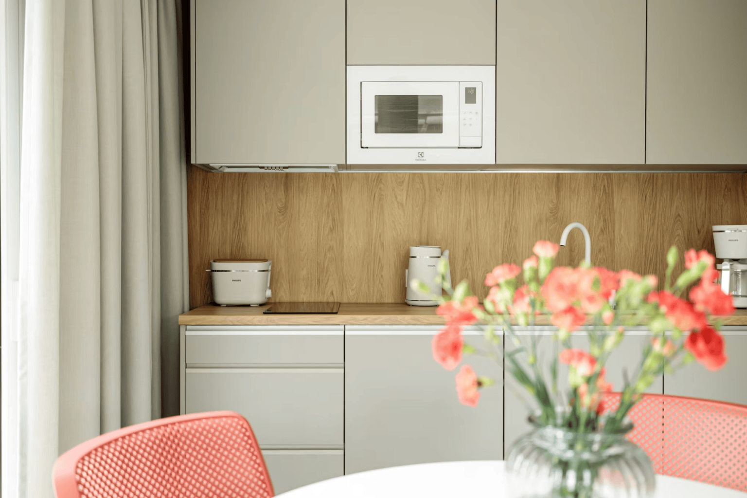 Die Umgebung lädt zu ausgedehnten Spaziergängen, Fahrradtouren oder Badepausen ein. Der mit der Blauen Flagge ausgezeichnete Strand ist zu jeder Jahreszeit attraktiv. Cafés, Lebensmittelgeschäfte und Restaurants befinden sich in fußläufiger Entfernung. Wer authentische Einblicke sucht, besucht den kleinen Fischereihafen oder das nahegelegene Brotbackmuseum, in dem Sauerteigbrot nach traditioneller Art gebacken wird. Kolberg mit seinem Hafen und der Salzgrotte liegt nur zehn Autominuten entfernt – ein lohnender Ausflug für Tage mit Ostseewind.